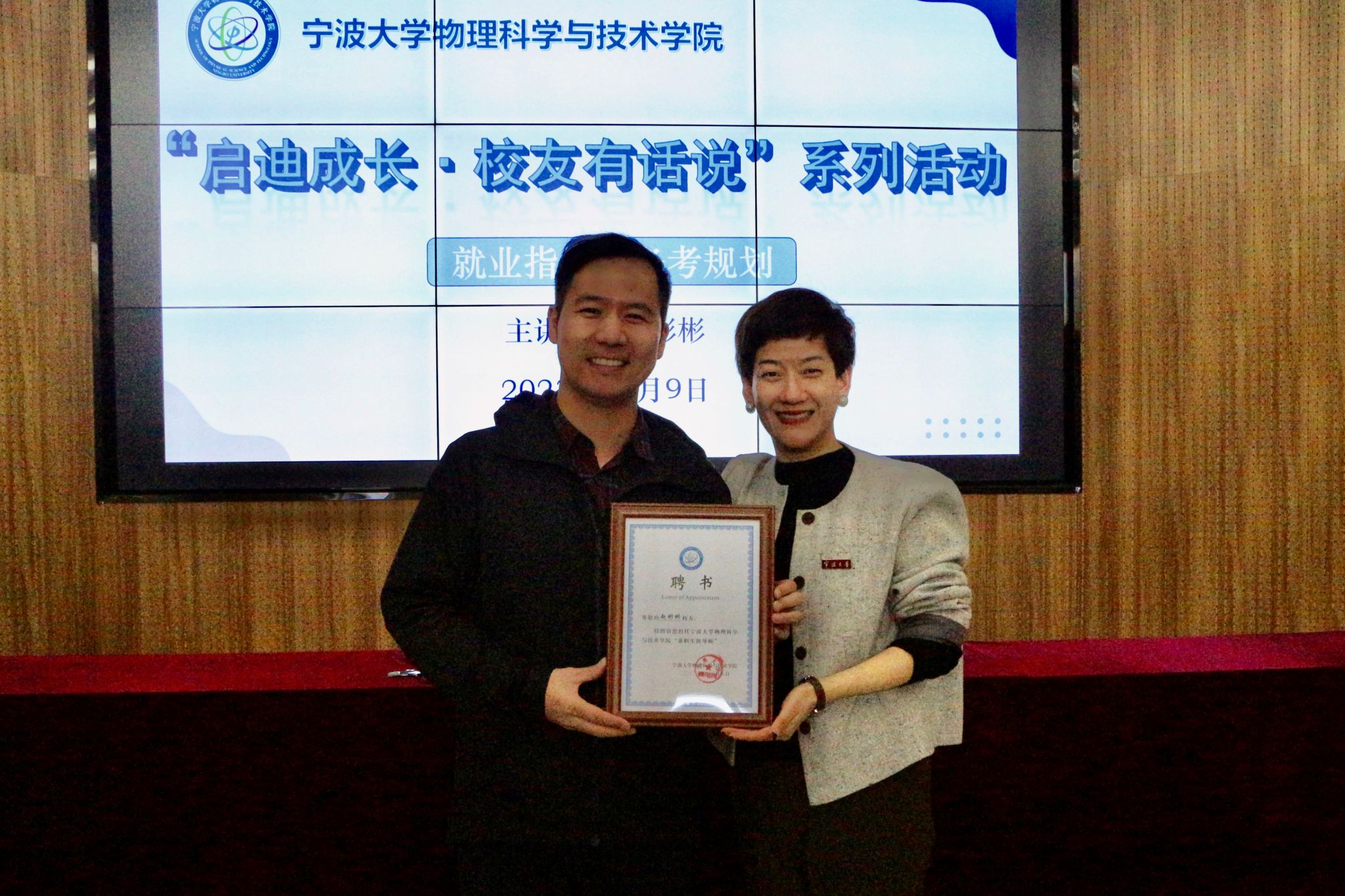 12月9日,物理科学与技术学院“启迪成长·校友有话说”系列活动——“就业指导 备考规划”在龙赛理科楼报告厅精彩开讲。物理科学与技术学院2009级优秀校友、鄞州区局管副职后备干部、区科学骨干教师、2017年宁波市初中科学创新实验一等奖获奖者、宁波市义务段“新课程背景下优秀课堂教学案例”一等奖获奖者、2022年区优质课比赛一等奖获奖者赵彬彬应邀担任主讲人。学院党委副书记刘小娣、校友工作联络人赫本说学生代表130余人参加活动。