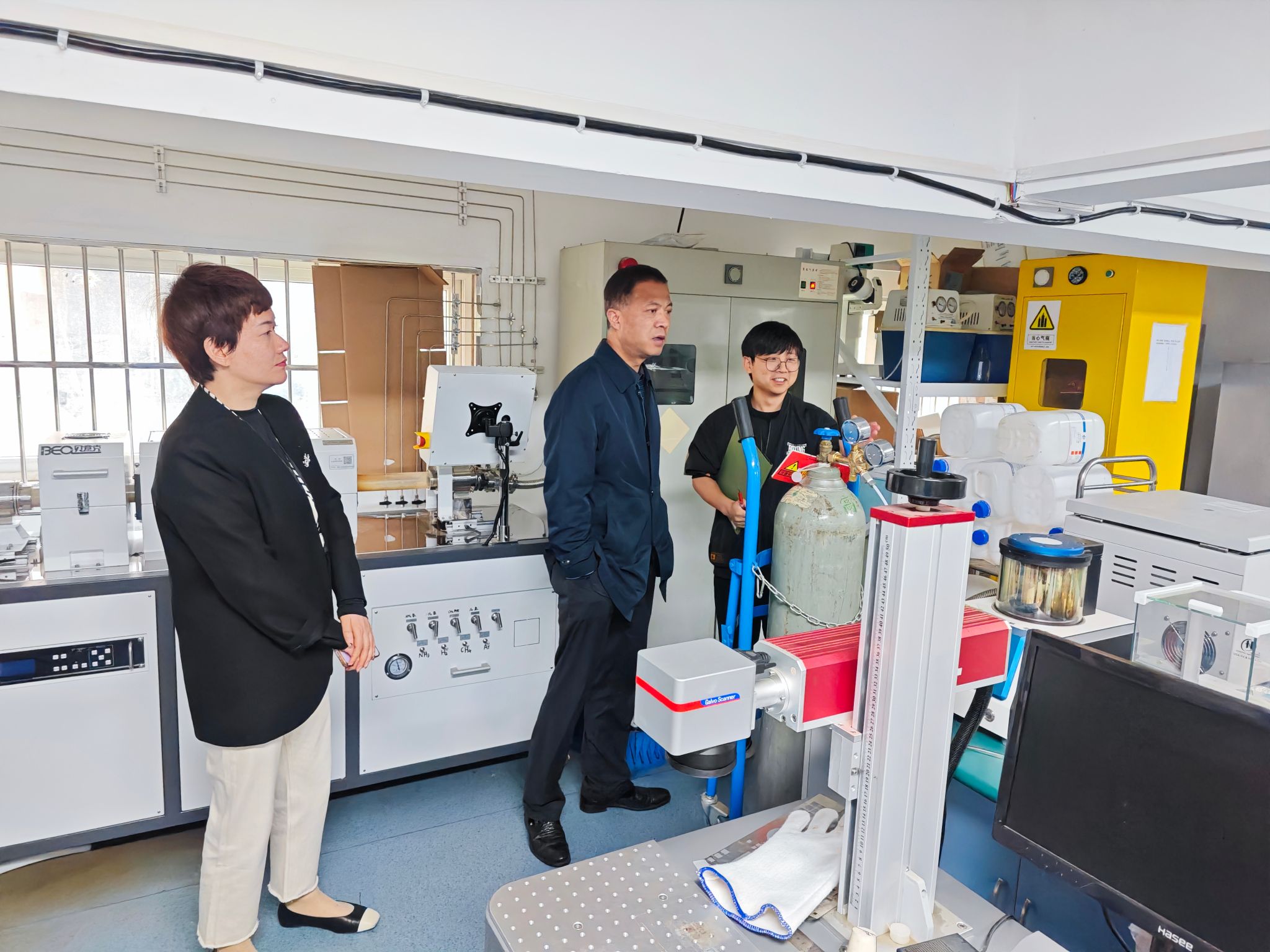 为进一步加强学院实验室安全管理工作与师生安全防范意识,预防和消除潜在安全隐患,保障“五一”假期期间实验室的安全稳定运行,4月30日,物理科学与技术学院党委书记朱学庆、副书记刘小娣带队对龙赛理科楼北楼和南楼的学院实验室开展了安全检查。