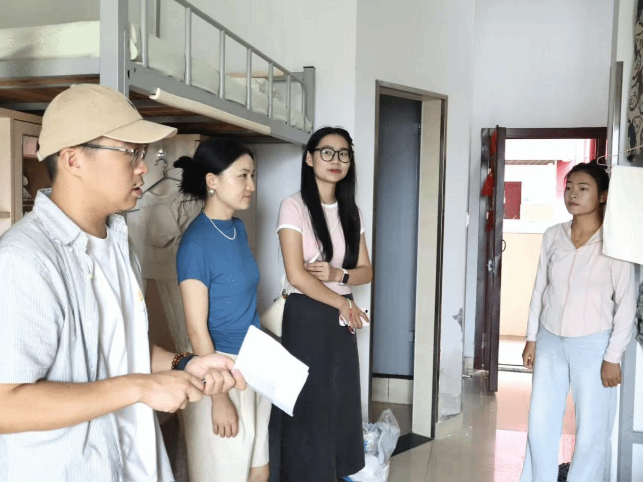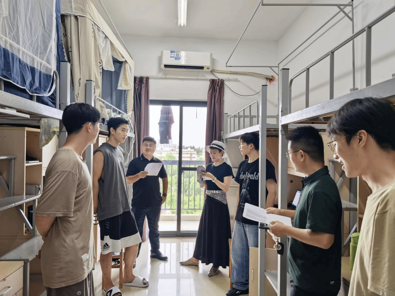 下午时分,学院的温暖主线从公共空间延伸至学生生活的“最小单元”。由学院学生工作负责人刘小娣、班主任刘召、研究生秘书和辅导员组成的走访团队,深入2025级研究生新生所在的宿舍,开展寝室走访活动。