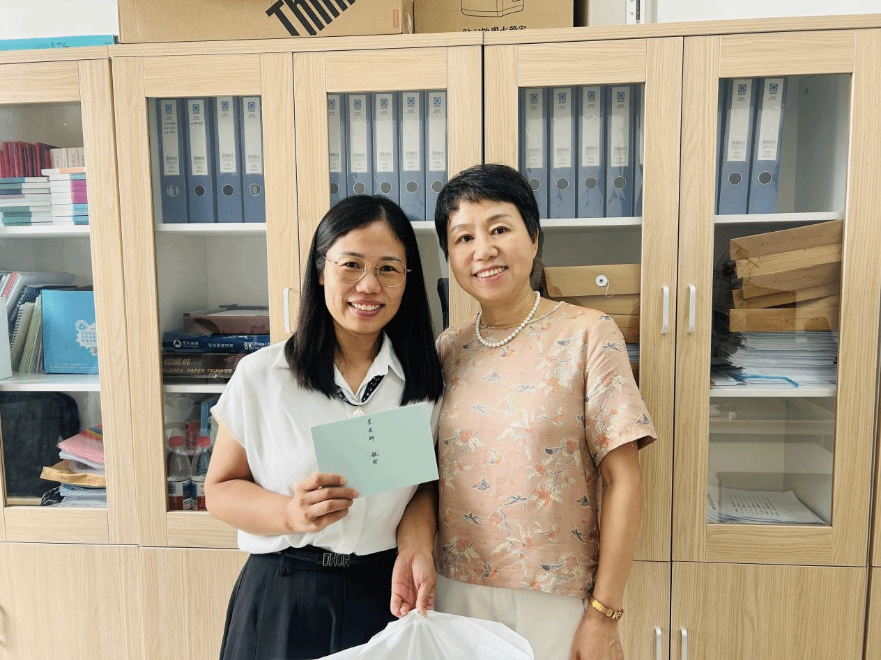 上午的龙赛理科楼里,充满着“教师节快乐”的祝福声。学院执行院长段香梅、党委副书记刘小娣一行向工龄满10年、20年、30年、40年的老师们逐一送上精心准备的祝福卡片与伴手礼品。