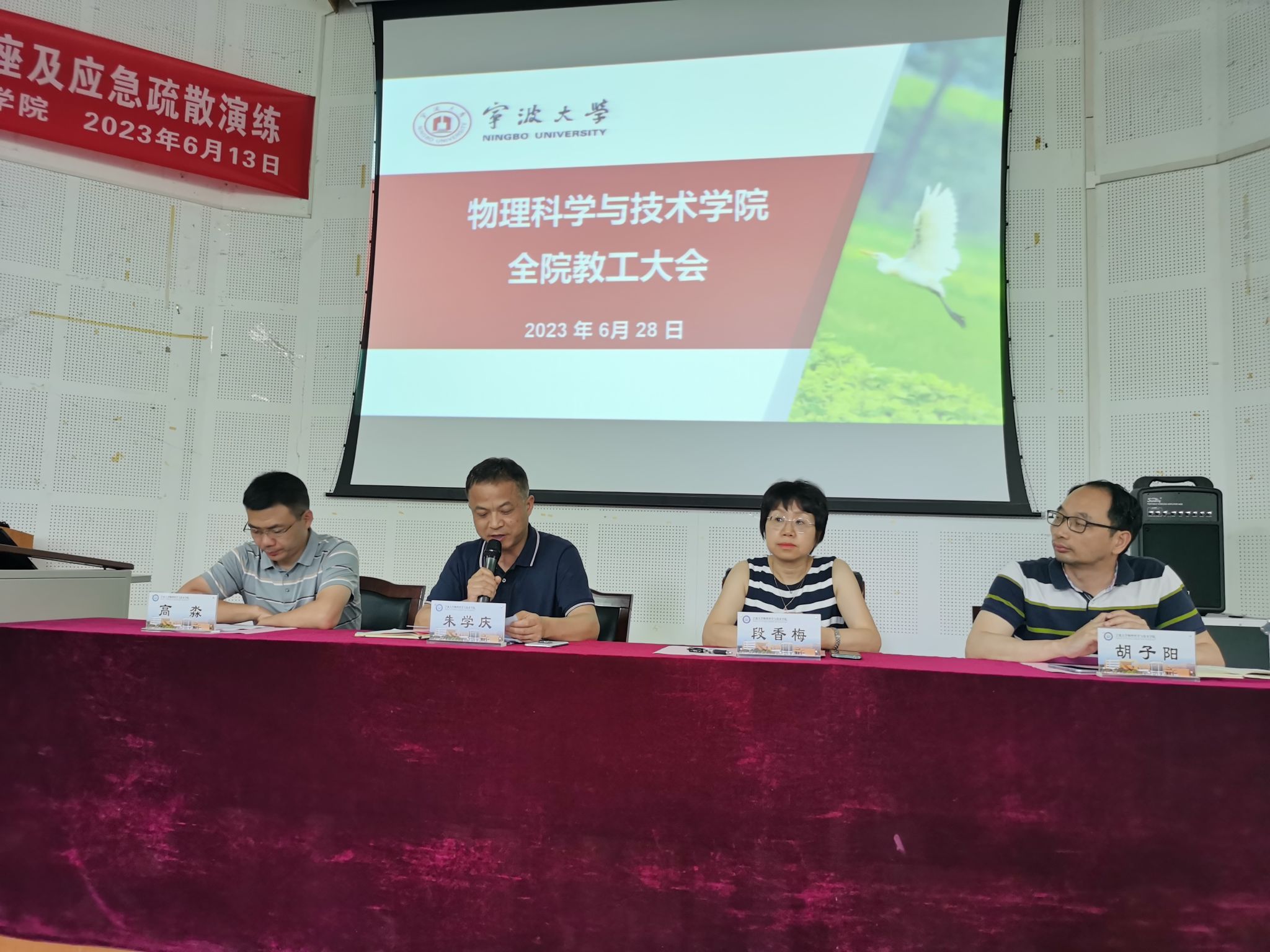 为进一步落实校“平安护航亚运会”暨校园安全稳定工作会议要求,2023年6月28日下午,我院在龙赛报告厅召开了全院暑期安全稳定工作会议。会议由学院党委书记朱学庆主持,学院班子成员、全院教职员工参加了此次会议。