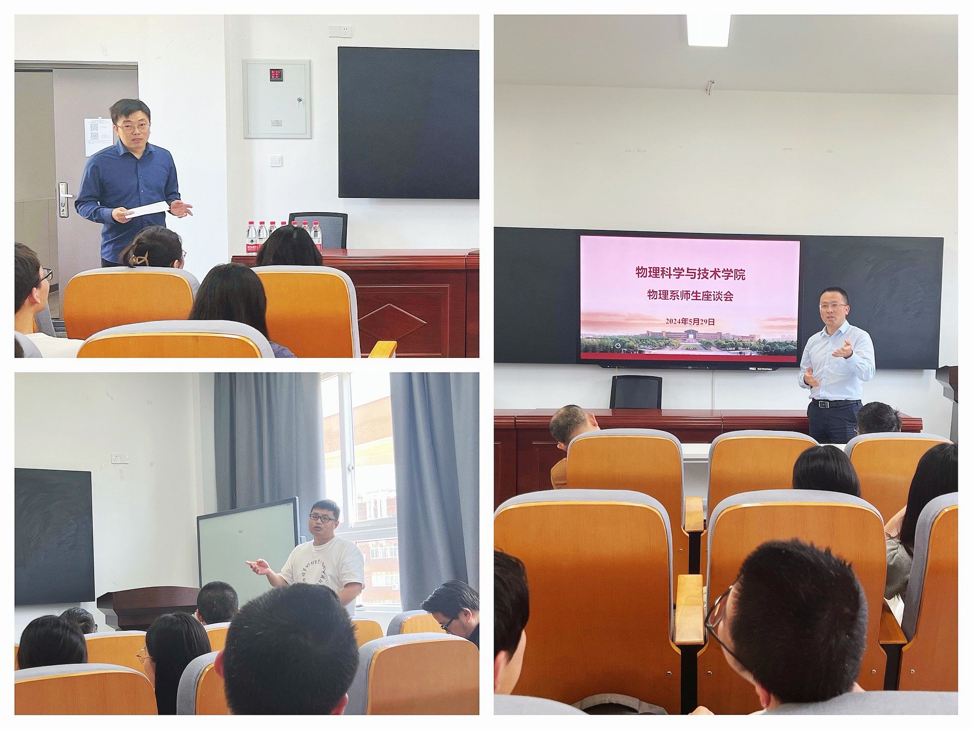 5月29日,物理科学与技术学院物理系在龙赛理科楼北楼314会议室召开了期中师生座谈会。会议由系主任汤世伟主持,教务办老师、物理系教师代表及学生代表参加了此次会议。