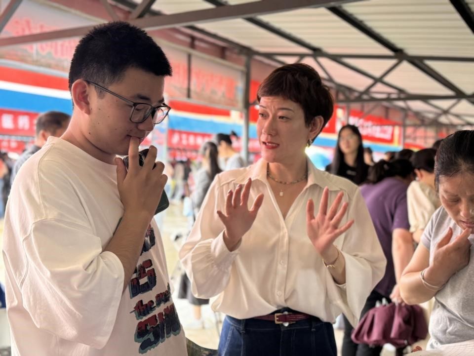 宣讲团成员们通过招生简章的发放,一对一现场交流等方式对考生和家长共同专注的招生政策、志愿填报、人才培养、发展前景、转专业等问题进行了耐心而细致的解答,强调学校地理位置“好”、学科门类“全”、师资队伍“优”、育人特色“强”、校园环境“美”等优势。