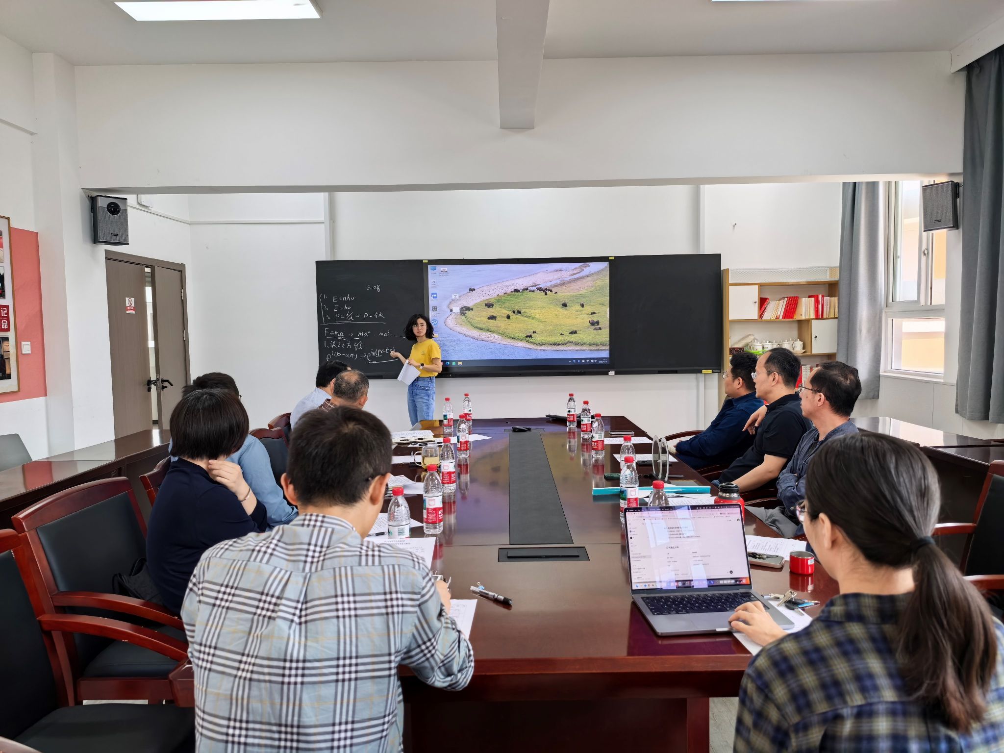 本次比赛聚焦“高阶性、创新性、挑战度”的“金课”建设标准,采用“15分钟现场授课+评委点评”的赛制。参赛教师围绕经典物理理论与前沿科技热点,巧妙融合课程思政元素,将抽象的物理原理转化为生动的课堂实践。汪文慧老师运用漂亮的板书,带大家了解了如何理解薛定谔方程;鲁越晖老师通过实验演示,为大家展示了什么是偏振光等等。