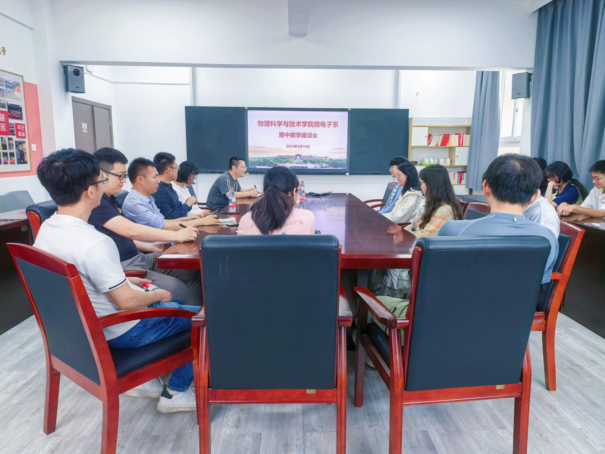 2025年5月16日,物理科学与技术学院微电子系期中教学座谈会在龙赛理科楼北楼228会议室顺利召开。会议由系主任陈达主持,教师代表、学生代表、教务办老师参加了本次会议。