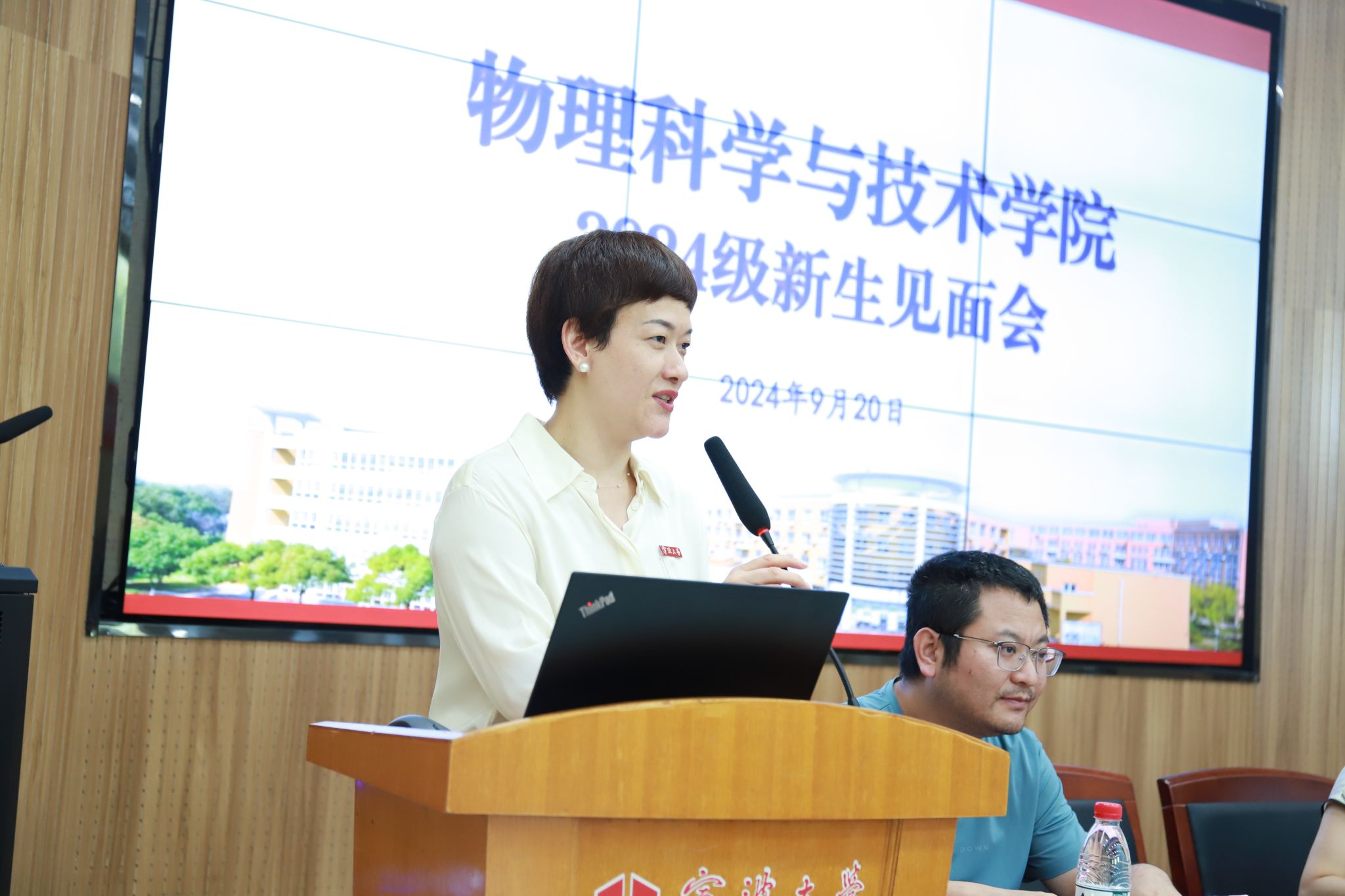 9月20日,物理科学与技术学院在龙赛报告厅隆重举行了主题为“悟理逐梦,求实致远”的2024级新生见面会暨开学典礼。学院领导班子成员、系主任、2024级班主任、教师代表、辅导员和全体本研新生参加了见面会。见面会由学院党委副书记刘小娣主持。