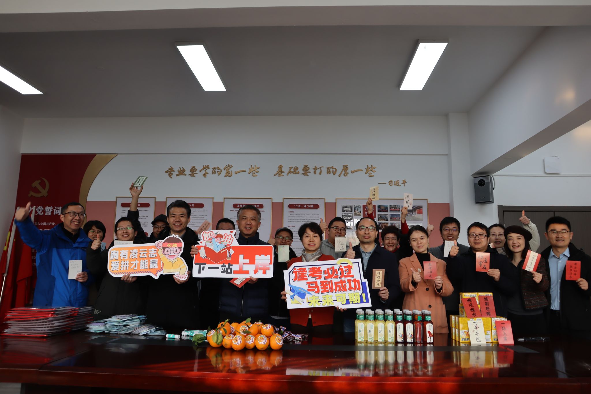为助力考研学子坚定备考信心,缓解考研压力,调整备考心态,激发前行动力,12月18日,物理科学与技术学院举办“冬至暖阳,廉心助考”送温暖活动,党政领导班子,各教学系主任及代表、辅导员等为2025届考研学子送上祝福与暖心礼包。
