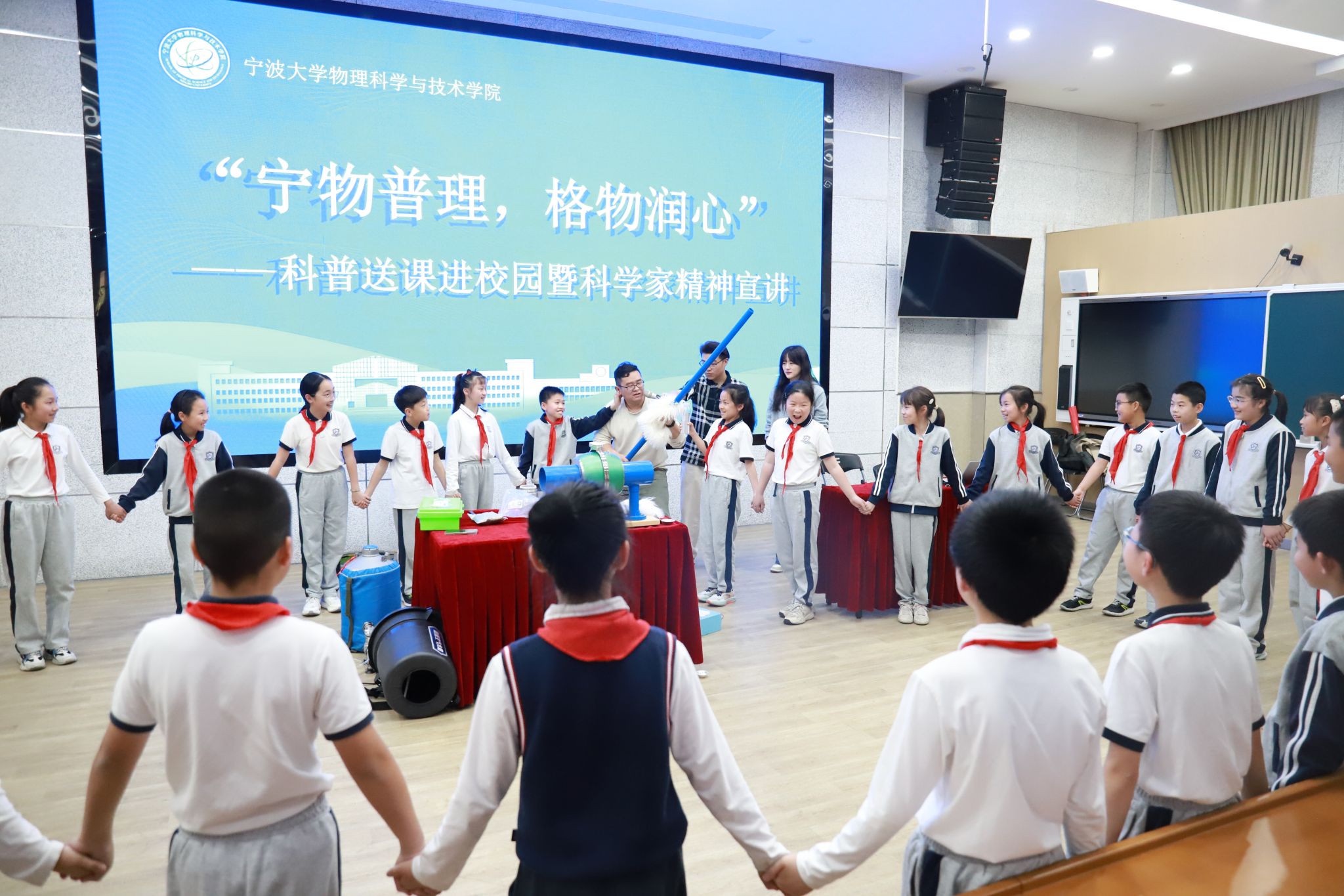 静电实验、超导磁悬浮……3月27日下午,一堂沉浸式体验科学魔术课堂在宁波市海曙外国语学校五江口校区拉开帷幕。为传承志愿服务精神,发挥“五老”以老带新作用,宁波大学“五老”人才库成员周骏教授和K体育·「中国」官方网站启明星科普宣讲团的师生们一起弘扬志愿公益精神,开展科普公益进校园活动,为该校五年级200余名小学生带来了一场别开生面的科普盛宴。