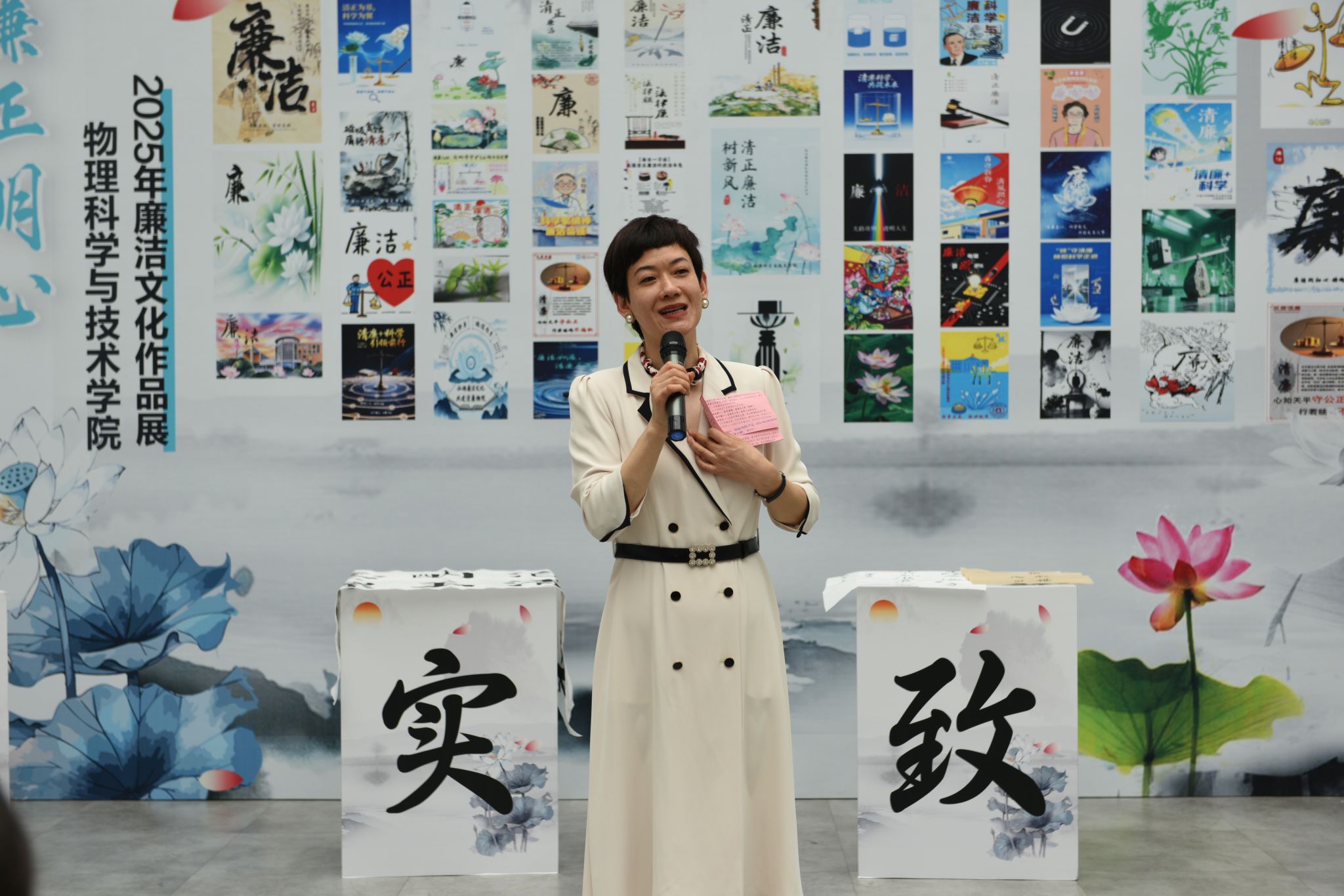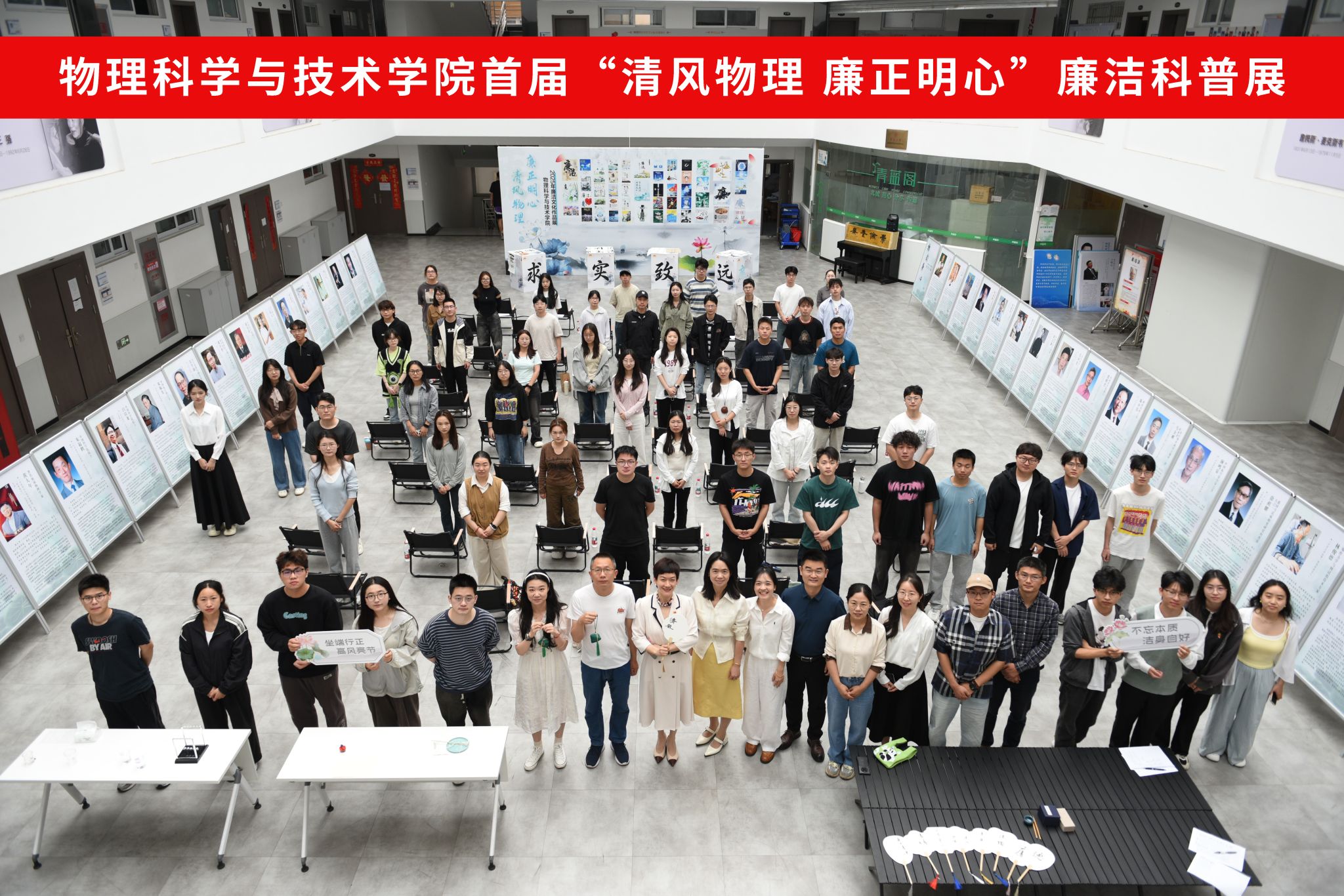 5月27日,物理科学与技术学院在龙赛理科楼北楼一楼大厅举办以“科学+清廉”为主题,创新推出了一场别开生面的廉洁科普游园集会。活动将物理学科特色与廉洁文化深度融合,通过故事讲述、艺术创作、趣味实验和手工体验,为师生呈现了一场兼具知识性与思想性的沉浸式廉洁教育盛宴,吸引近百名师生参与。