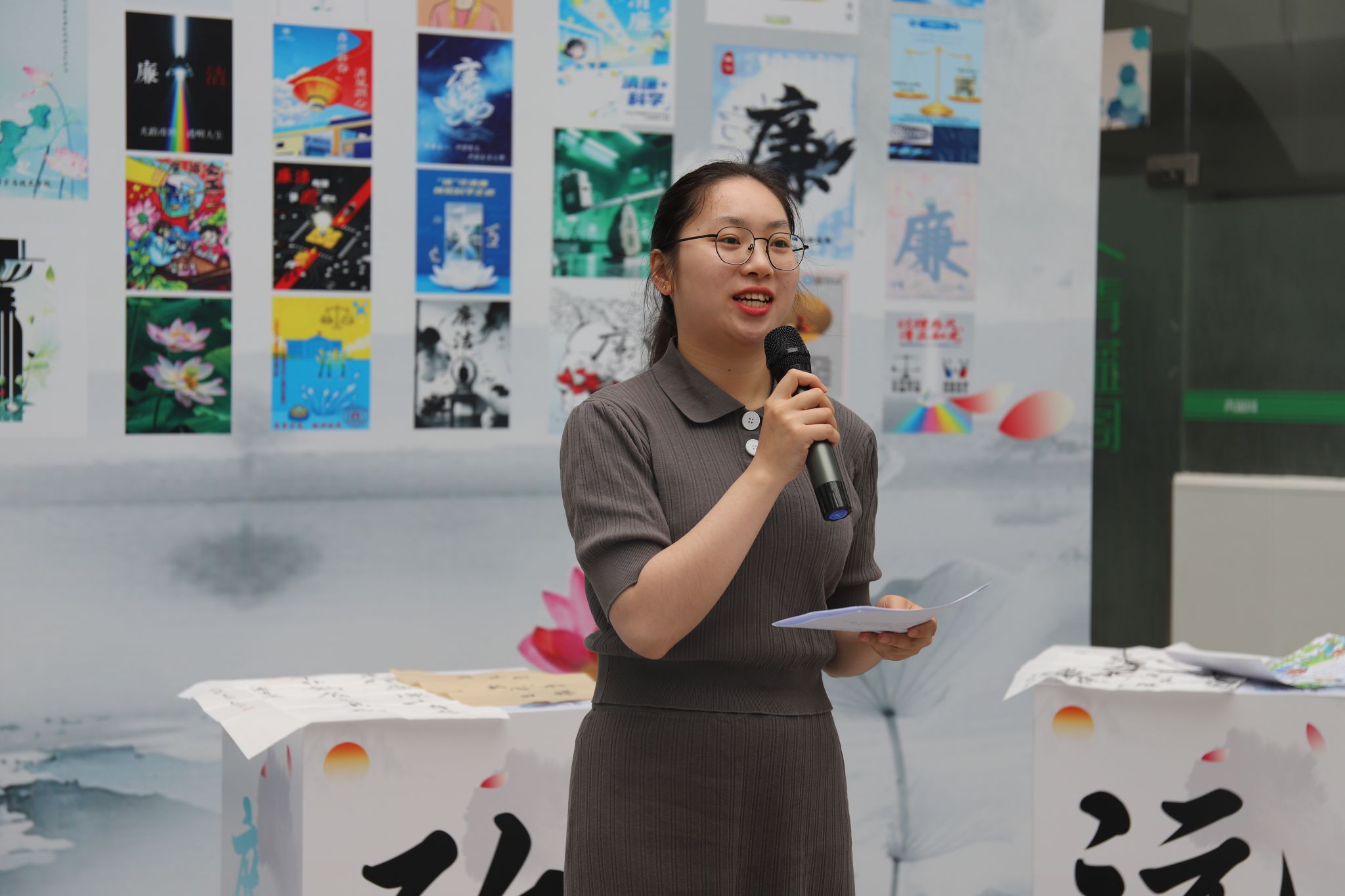 恰逢端午临近,活动还特别设置“粽香话廉”手工体验区,师生们在现场包制“廉洁粽”,编织艾草香囊并在漆扇上题写廉语,融廉于趣,润物无声。