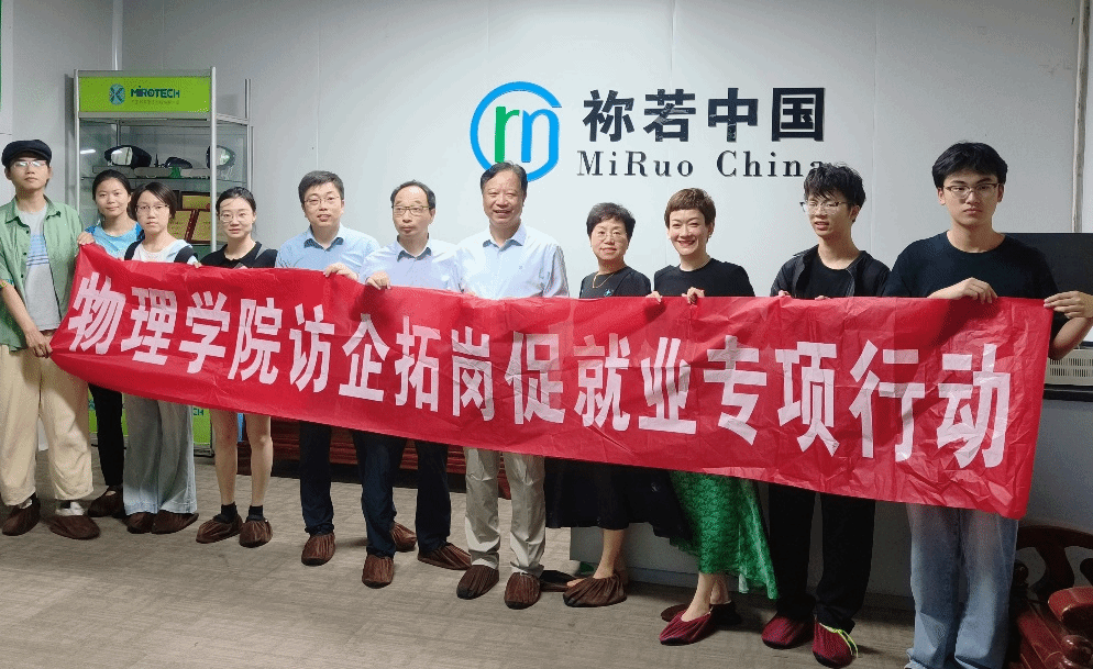 为持续推进“访企拓岗促就业”专项行动,进一步深化校企合作,丰富就业资源,7月22日,物理科学与技术学院执行院长段香梅、党委副书记刘小娣、教学副院长胡子阳、物理系主任汤世伟等一行10人,前往宁波祢若电子科技有限公司(祢若中国)进行访问交流。在祢若科技董事长胡克银先生、总经理胡珊珊女士及公司研发团队骨干成员的陪同下,学院一行首先参观了该公司变色材料生产组装流水线、产品质检线等主要生产区域,深入了解该企业的生产模式、...