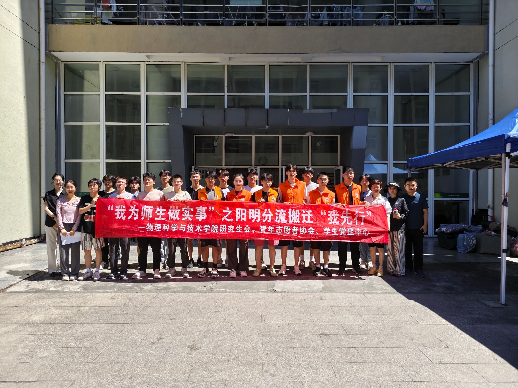 为保障学生寝室分流搬迁工作高效、有序、顺畅进行,7月6日,物理科学与技术学院开展了“我为师生做实事”之助力阳明分流搬迁志愿服务活动。学院党委副书记刘小娣,学工办主任常文豪,辅导员张锡炜、陈玉珂、叶芷毓、毛忻怡以及众多学生志愿者共同投入这场温暖的搬迁接力。搬迁当日,身着醒目橙黄色志愿服的学生志愿者们早早集结在宿舍楼下。他们分工明确、密切协作,细心分类、高效搬运每一件行李,成为校园里一道亮丽而充满活力的风景线。...
