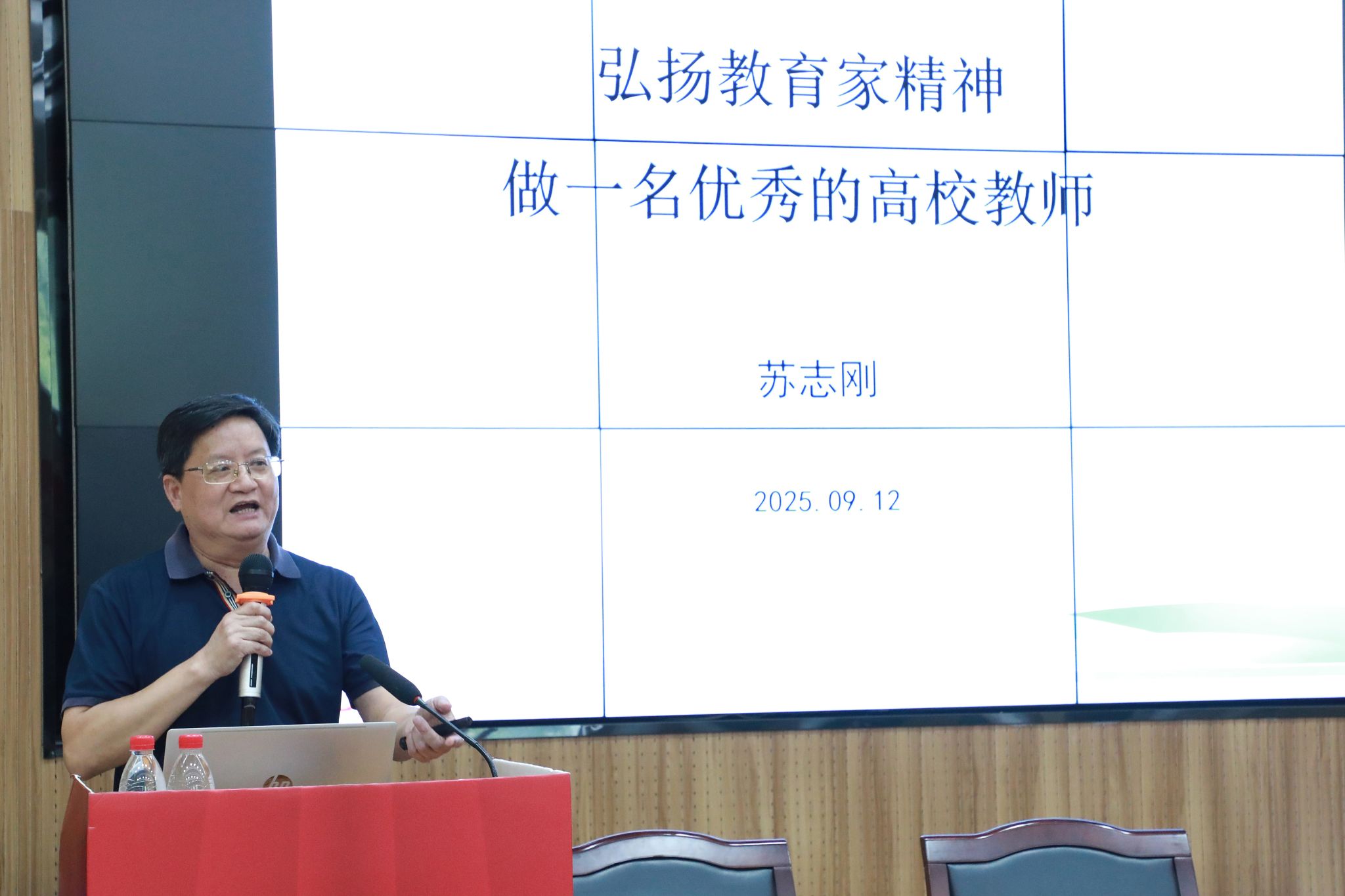 为庆祝第41个教师节,弘扬教育家精神,加强新时代高素质专业化教师队伍建设,9月12日,由学校人事处、党委人才办主办,潘天寿建筑与艺术设计学院党委牵头,联合商学院党委、体育学院党委、物理科学与技术学院党委、数学与统计学院党委共同承办的“弘扬教育家精神,做一名优秀的高校教师”专题讲座在龙赛报告厅举行,讲座邀请了苏志刚教授主讲,学校200余名教职工参加。苏志刚教授在讲座中,系统阐述了教育家精神对高校教师的重要意义。...